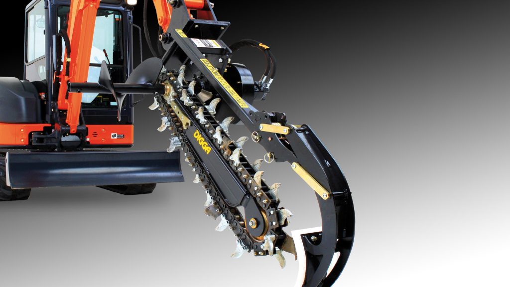 Wyposażone w kompaktowy, ale o dużej mocy i wysokiej jakości planetarny układ napędowy Digga. Urządzenie to jest uznane, jako wiodący w branży sprzęt do kopania rowów. Regulowana płoza pozwala na uzyskiwanie stałej głębokości rowu. Przy pomocy pojedynczego świdra ziemnego, urobek jest efektywnie usuwany na jedną stronę rowu. Rama umożliwia ręczne przesunięcie boczne dla potrzeb kopania blisko struktur stałych, tj. budynków i drzew.